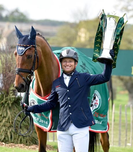 Michael Jung und sein Paradepferd Sam nach dem Grand Slam-Erfolg in Badminton