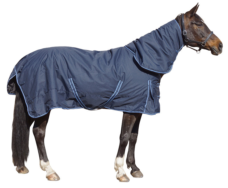 Outdoordecke mit Halsteil Atmungsaktive, wind- und wasserdichte Winter Outdoordecke mit festem Halsteil. wasserdicht winddicht atmungsaktiv dampfdurchlässig verschweißte Nähte 600 Denier Ripstop 300g Füllung/m² Taftfutter PU-beschichtet doppelte Frontverschnallung, Dornschnallen ohne Rückennaht variabler Hakenverschluss Kreuzgurte Gehfalte Hinterhandbegurtung Beinschnüre elastisch, verstellbar, abnehmbar Schweiflatz waschbar bei 30°C Farben : schwarz, navy Größe : 115, 125, 135, 145, 155, 165 cm Obermaterial: 600 Denier Ripstop, 100% Polyester, PU Beschichtung Füllung: 300g Polyestervlies pro m² Innenfutter: 100% Polyester Einfassband kann farblich variieren.