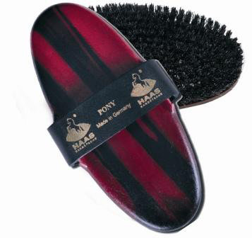 Haas Kardätsche „Pony“ Ausgesuchtes Rosshaar und Naturborsten gemischt mit einem geringen Anteil Messing-Feindraht, zur Verbesserung der Festigkeit, werden zur Herstellung dieser Bürste verwendet. Die ausgewogene Material-Mischung gibt dieser Bürste ausgezeichnete Reinigungseigenschaften, auch bei stärkeren Fellverschmutzungen. Material Besteckung: Rosshaarmischung, Messingborsten Bürstenkörper: Kunststoff Farbe Bürstenkörper: wie Bild / Holzimitat Größe: 200 x 85 mm