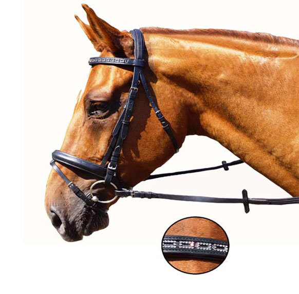 Trensenzaum „Cascaro“ Trensenzaum mit exklusiver Strasseinlage im Stirnband hochwertiges weiches Qualitätsleder schwedisches Reithalfter Genick-, Stirn- und Nasenriemen mit Softleder weich gepolstert Reithalfter wird über dem Genickriemen geführt silberfarbene Beschläge inkl.Gurtzügeln Größen: Cob, Full Farbe: schwarz dazu passend erhältlich : Lederhalfter „Cascaro“ Art.-Nr. 1402007
