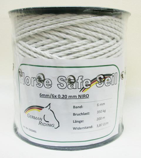Horse Safe Seil (6 x 0,20, Niro 6mm x 200m) Widerstand: 3,87 Ohm/m Bruchlast: 350 kg weiß