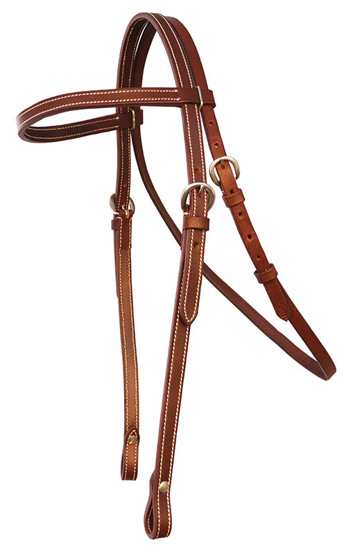 Arbeitszaum gerades Stirnband schlichtes Kopfstück in bester Lederqualität englisches Leder doppelt vernäht Kanten gerundet Edelstahlbeschläge weiße Ziernähte gerades Stirnband ohne Zügel Chicagoschrauben – System Farbe: mittelbraun Größe: Full
